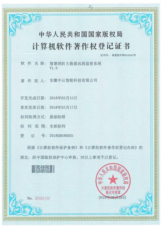 8月底,本司“生命體征健康監測(智能床墊)系統”、“智慧安全養老及社區便民服務綜合平臺”、“智慧消防大數據遠程監管系統”、“智慧安全綜合服務平臺”、“智慧黨建系統”等五個項目,先后通過了中國版權局保護中心的審核,取得了《中華人民共和國國家版權局計算軟件著作權登記證書》。