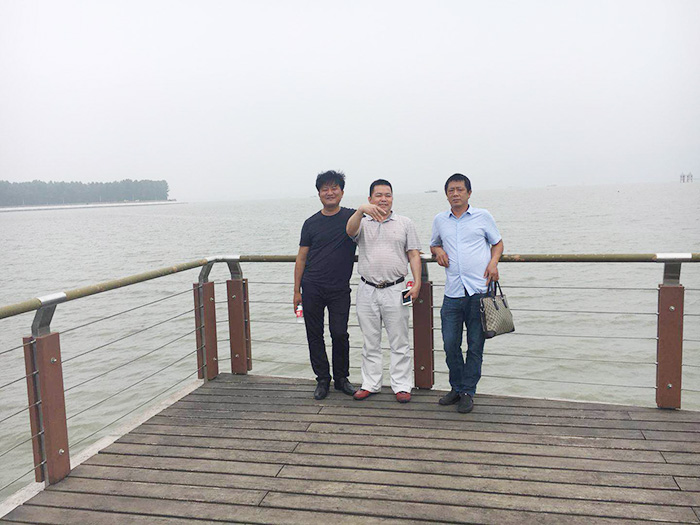 江西景德鎮楊總、山東郭總、巢湖李總、山西李總在巢湖長江水閘前留影