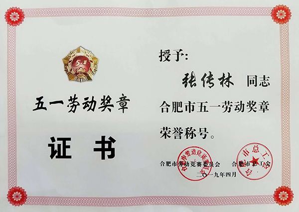 安徽中云智能科技董事長張傳林同志榮獲“五一勞動獎章”