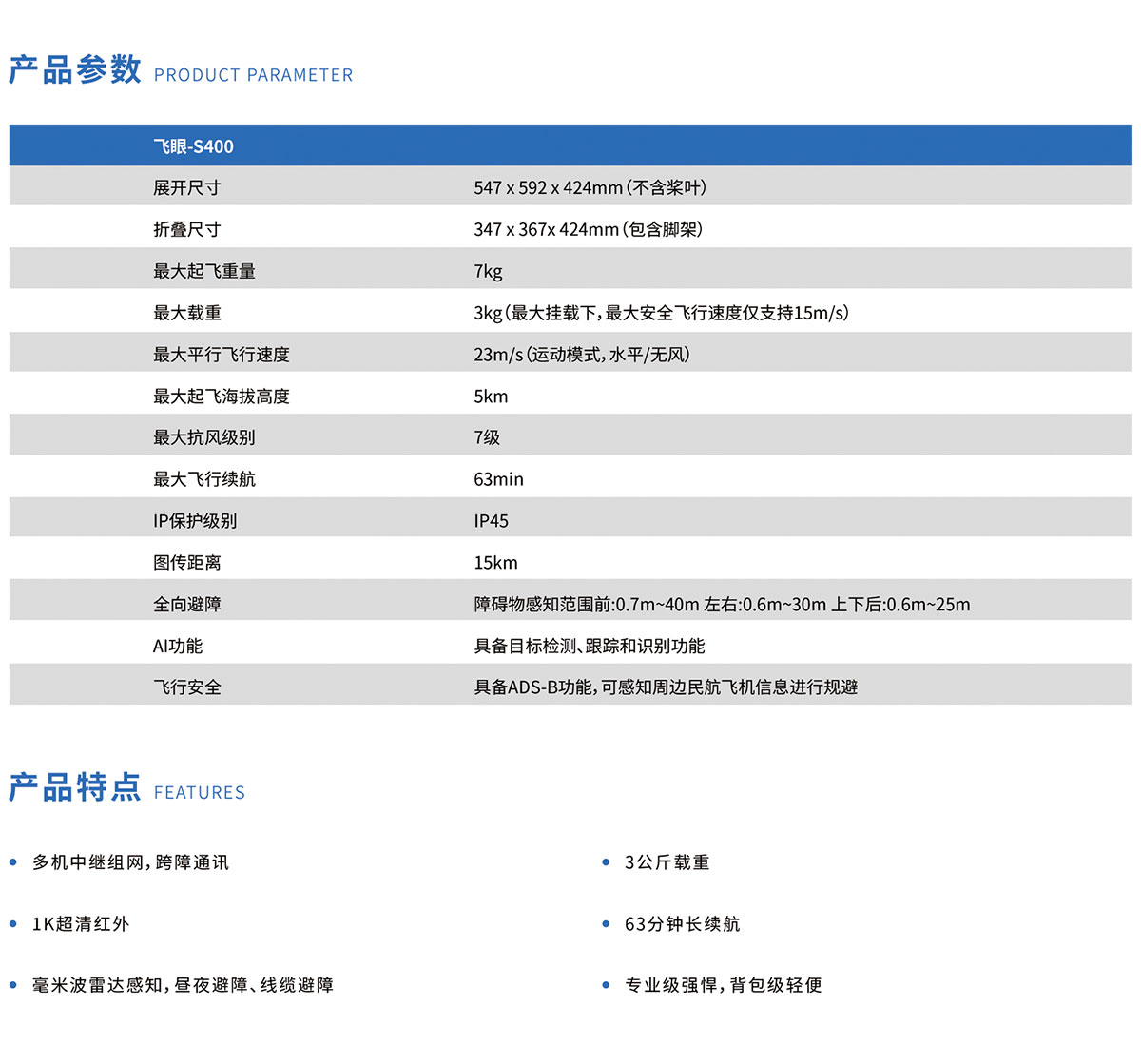 飛眼 -S400 是中云智能科技重磅推出的一款輕型工業級旗艦無人機,它融合了多項無人機系統前沿技術,在穩固性、自主化、智能化等方面均有重大突破。擁有行業先進的無人機跨視距組網技術,輕松實現多臺無人機與操控設備的智能互聯,讓作業效率倍增。